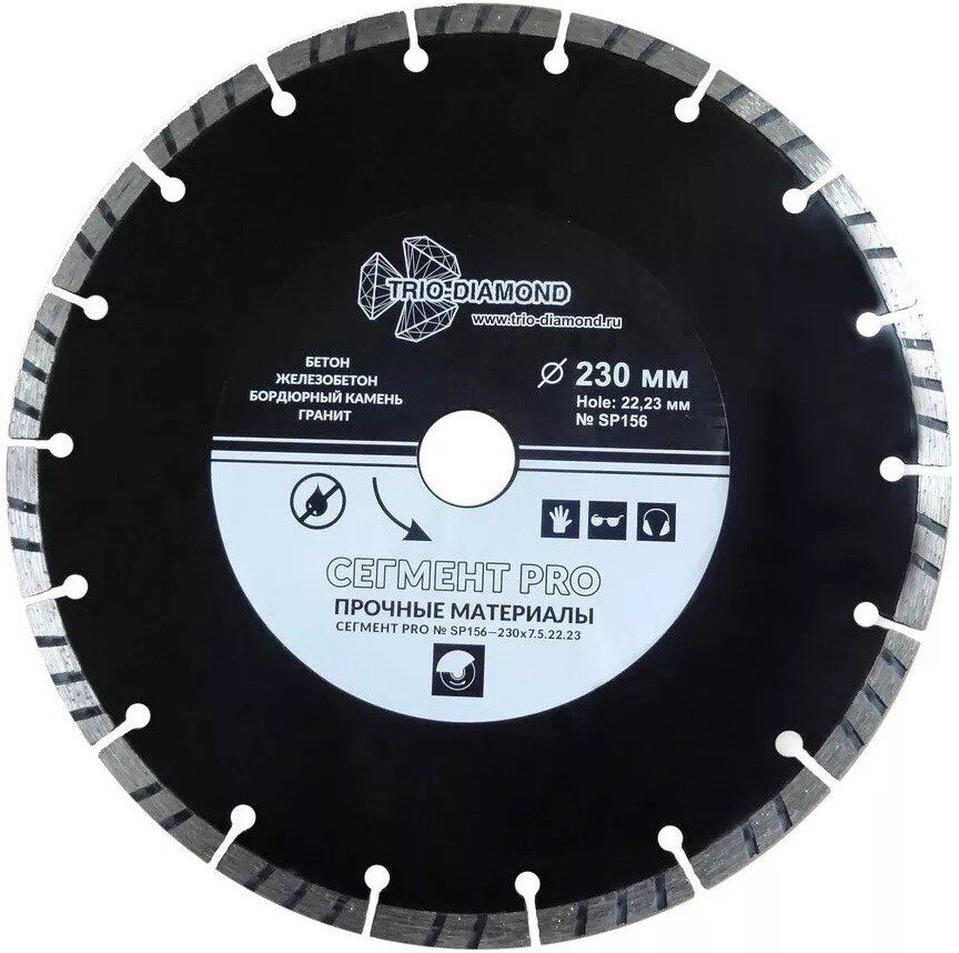 Круг алмазный 230х22,23 мм TRIO-DIAMOND Pro (SP156) с турбо-сегментной режущей кромкой и повышенной износостойкостью. Технология производства: холодное прессование. Назначение: железобетон, бетон, бордюрный камень, огнеупоры.