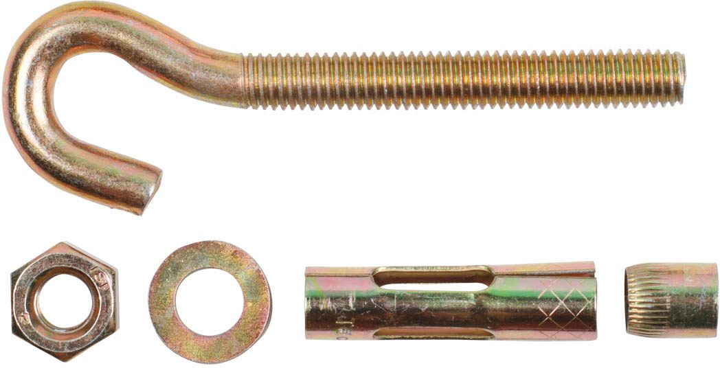 Материал – стальПокрытие – цинкДиаметр резьбы – 8ммДиаметр анкера и сверла – 10ммМинимальная глубина крепления – 50ммДлина анкера указана без крюкаИспользуется для крепления тяжеловесных конструкций к полнотелому бетону, природному строительному камню, полнотелому кирпичу.