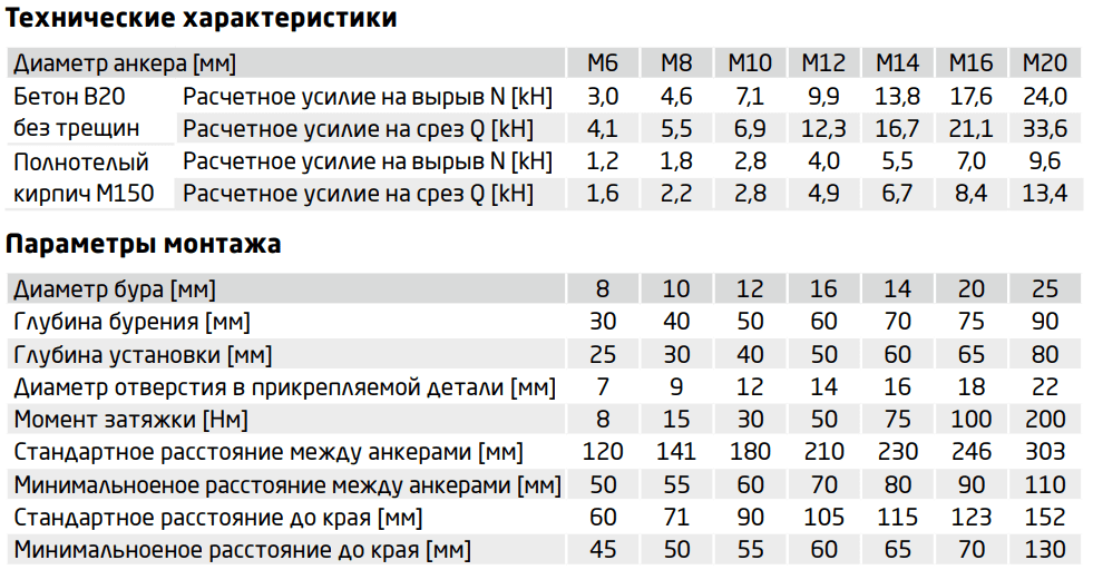 | Расчетное усилие на вырыв (бетон B20) | 9,9 кН |