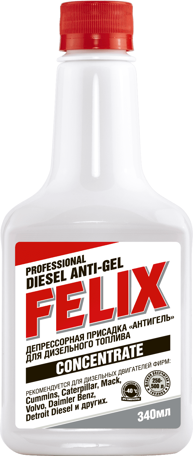 Присадка в дизельное топливо антигель FELIX 340 мл (411040004) – это депрессорная присадка нового поколения, предназначенная для добавления в дизельное топливо с целью стабилизации работы двигателя в широком диапазоне климатических условий. Антигель FELIX воздействует на углеводороды парафиновой группы и растворенную в топливе воду, значительно снижая температуру фильтруемости и замерзания дизельного топлива. Рассчитан на 250-500 литров топлива в зависимости от выбранной температуры фильтруемости.