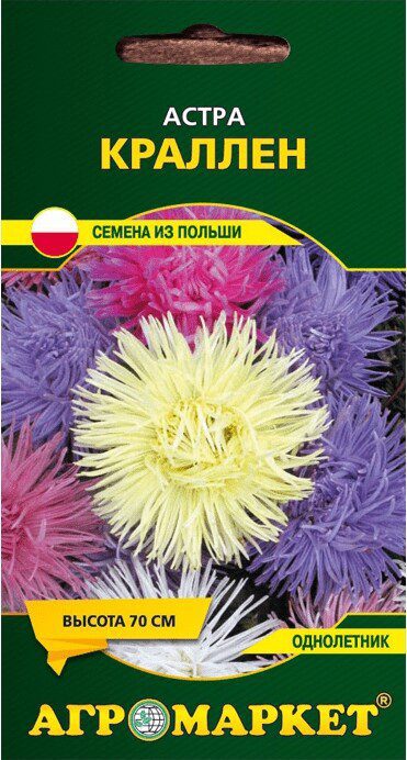 Семена астры Краллен смесь АГРОМАРКЕТ 0,5 г (17409) – это прекрасный однолетник для украшения цветника осенью. Предпочитает солнечные, защищенные от ветра места, с хорошо дренированными и удобренными почвами, но без свежего навоза. Уход за растениями в период вегетации заключается в регулярном поливе, рыхлении и подкормках. Рекомендуется для клумб, рабаток, массовых посадок и для срезки.