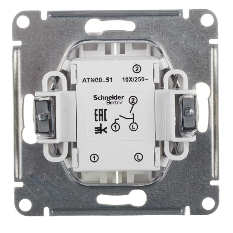 Механизм коллекции AtlasDesign в исполнении ЛОТОС выключателя 1-клавишного Применим для подключения к сетям 250 В с номинальным током 10 А.. – Лицевые панели из качественного ABS-пластика, устойчивого к царапинам и УФ-излучению. – Усиленные прямые монтажные лапки для лучшей фиксации механизма в монтажной коробке.