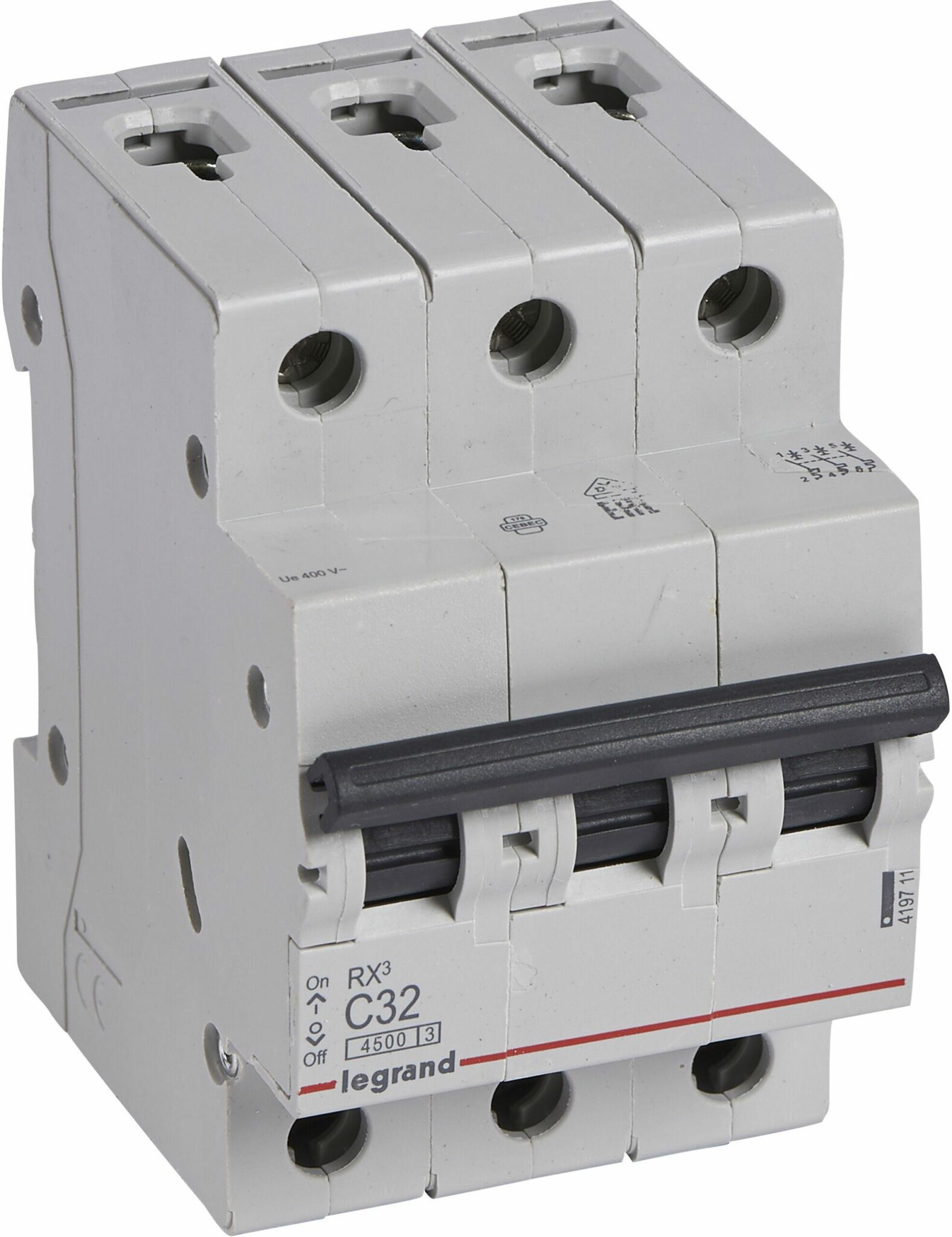 Автоматический выключатель LEGRAND RX3 4500 3P 32А С 4,5кА (419711) выполняет защиту установок от перегрузок и коротких замыканий, обеспечивая их надежную и безопасную эксплуатацию.