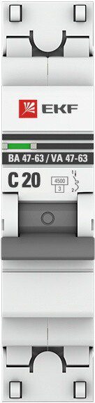 Автоматический выключатель EKF PROxima ВА 47-63 1P 20А C 4,5кA (mcb4763-1-20C-pro) является механическим коммутационным аппаратом и соответствуют ГОСТ Р50345-2010. Особенностью данной серии выключателей является усовершенствованная конструкция. В выключателе имеются пластиковые крышки, закрывающие доступ к винтовому зажиму и служащие для опломбирования выключателя, что исключает несанкционированный доступ к проводникам. Корпус выключателя усилен дополнительными заклепками для устранения эффекта расхождения корпуса. Выключатель оборудован удобной ручкой управления, обеспечивающей надежное оперирование изделием. На лицевой панели выключателя имеется цветовой индикатор состояния. Конструкция установочного зажима обеспечивает свободную установку выключателя на DIN-рейку.