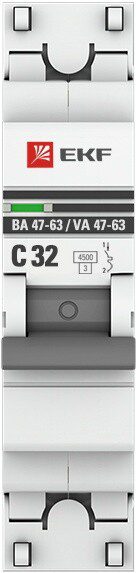 Автоматический выключатель EKF PROxima ВА 47-63 1P 32А C 4,5кA (mcb4763-1-32C-pro) является механическим коммутационным аппаратом и соответствуют ГОСТ Р50345-2010. Особенностью данной серии выключателей является усовершенствованная конструкция. В выключателе имеются пластиковые крышки, закрывающие доступ к винтовому зажиму и служащие для опломбирования выключателя, что исключает несанкционированный доступ к проводникам. Корпус выключателя усилен дополнительными заклепками для устранения эффекта расхождения корпуса. Выключатель оборудован удобной ручкой управления, обеспечивающей надежное оперирование изделием. На лицевой панели выключателя имеется цветовой индикатор состояния. Конструкция установочного зажима обеспечивает свободную установку выключателя на DIN-рейку.