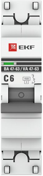 Автоматический выключатель EKF PROxima ВА 47-63 1P 6А C 4,5кA (mcb4763-1-06C-pro) является механическим коммутационным аппаратом и соответствуют ГОСТ Р50345-2010. Особенностью данной серии выключателей является усовершенствованная конструкция. В выключателе имеются пластиковые крышки, закрывающие доступ к винтовому зажиму и служащие для опломбирования выключателя, что исключает несанкционированный доступ к проводникам. Корпус выключателя усилен дополнительными заклепками для устранения эффекта расхождения корпуса. Выключатель оборудован удобной ручкой управления, обеспечивающей надежное оперирование изделием. На лицевой панели выключателя имеется цветовой индикатор состояния. Конструкция установочного зажима обеспечивает свободную установку выключателя на DIN-рейку.