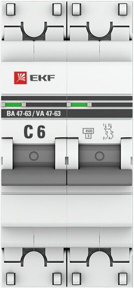 Автоматический выключатель EKF PROxima ВА 47-63 2P 6А C 4,5кA (mcb4763-2-06C-pro) является механическим коммутационным аппаратом и соответствуют ГОСТ Р50345-2010. Особенностью данной серии выключателей является усовершенствованная конструкция. В выключателе имеются пластиковые крышки, закрывающие доступ к винтовому зажиму и служащие для опломбирования выключателя, что исключает несанкционированный доступ к проводникам. Корпус выключателя усилен дополнительными заклепками для устранения эффекта расхождения корпуса. Выключатель оборудован удобной ручкой управления, обеспечивающей надежное оперирование изделием. На лицевой панели выключателя имеется цветовой индикатор состояния. Конструкция установочного зажима обеспечивает свободную установку выключателя на DIN-рейку.
