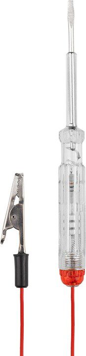 Индикатор напряжения автомобильный REXANT (16-0101) предназначен для быстрой и эффективной диагностики электрооборудования автомобилей. Позволяет определить полярность напряжения (+/-), выявить обрыв проводки или проверить предохранители. Корпус выполнен из ударопрочного пластика и снабжен проводом с зажимом типа “крокодил” и световым индикатором.