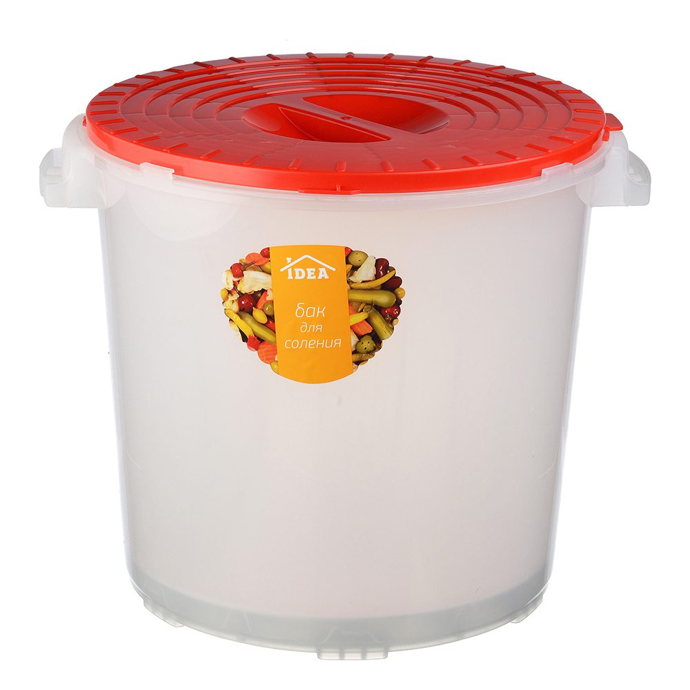 Бак для соления IDEA 25 л (М2406) выполнен из высококачественного пищевого пластика, легко очищается и не впитывает посторонние запахи. Прочный пластик не поддается деформации во время использования, крышка плотно крепится посредством специальных фиксаторов. Бак для соления имеет удобные боковые ручки для переноски.
