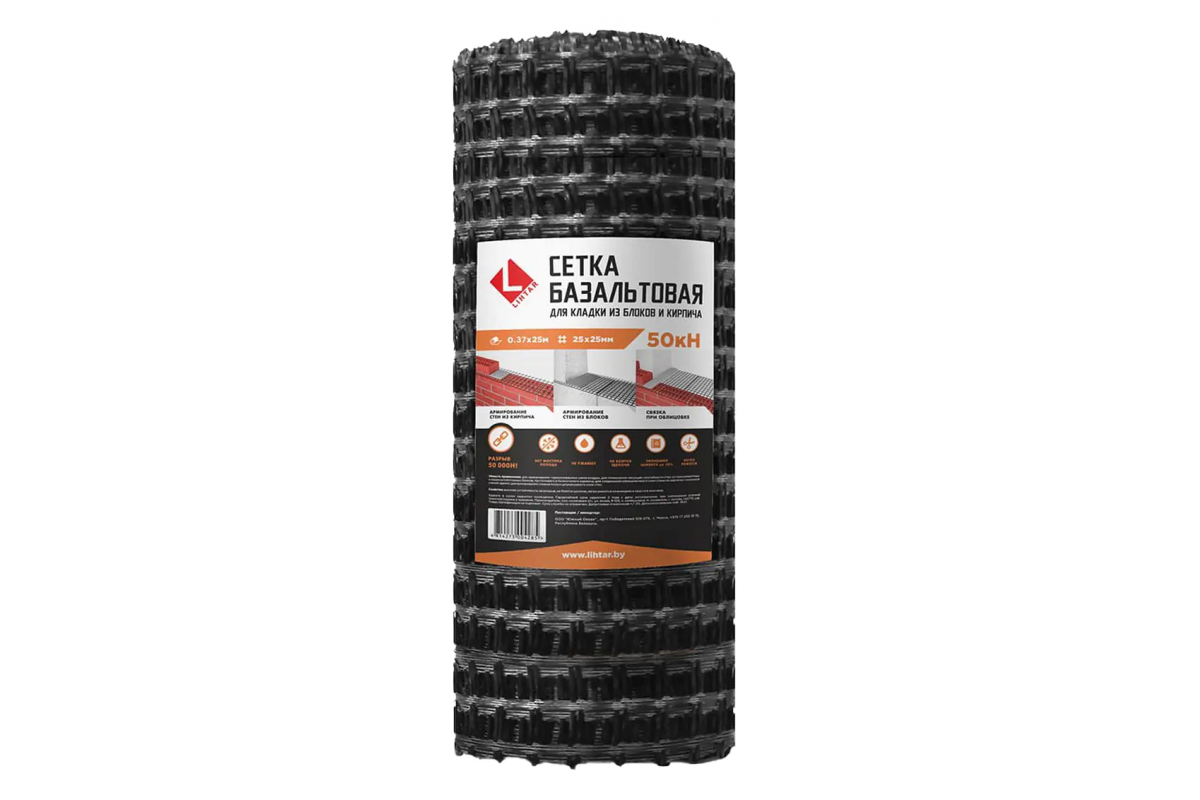 Сетка базальтовая LIHTAR 50 для кладки 0,37х25 м ячейка 25х25 используется при стяжке полов, возведении стен, укреплении оконных и дверных проёмов, монтаже крыши, утеплении, фасадных работах. Отлично противостоит деформациям, изгибам, повышенной нагрузке. В отличие от металлической арматуры не увеличивает теплопотери, не является мостиком холода. Не коррозирует, в отличие от металла в местах сварки. Устойчива к агрессивным средам, в том числе щелочной среде цементно-песчаного раствора, в который она утапливается при формировании кладки. Обеспечивается прочное сцепление материалов.