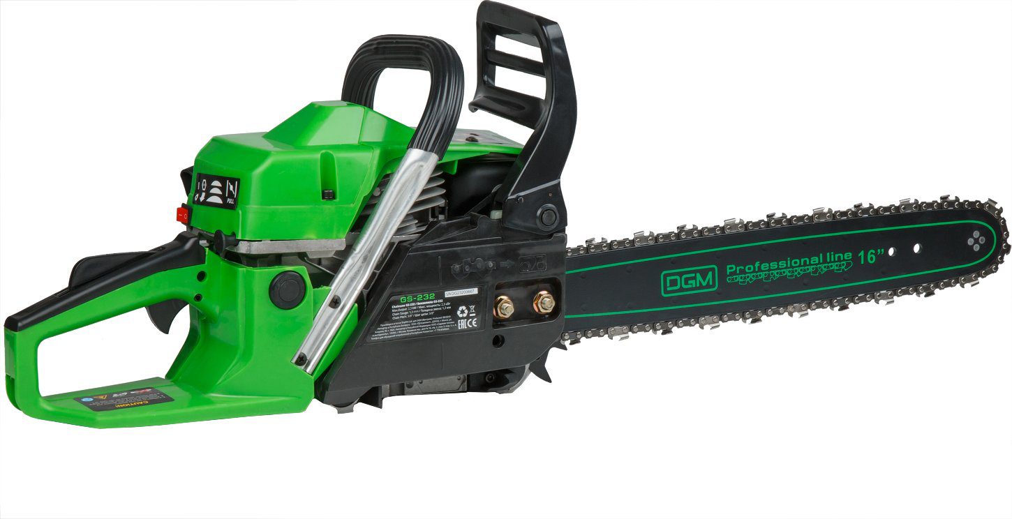 Бензопила DGM GS-232 Мощная и производительная бензопила DGM, оснащенная шиной 16″ (40 см) отлично подходит для широкого круга задач по уходу за садовым участком.