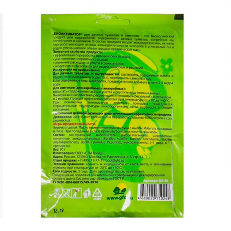 | Состав | сухие почвенные микроорганизмы, наполнитель |