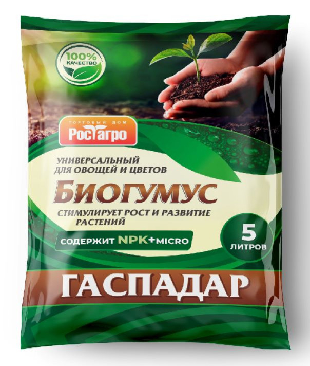 Удобрение органическое ГАСПАДАР Биогумус универсальный для овощей и цветов 5 л – экологически чистый, естественно-природный продукт, полученный в результате переработки органических отходов популяцией дождевого червя. Содержит в сбалансированном сочетании целый комлекс необходимых питательных веществ: гуминовые кислоты, гуматы, макро- и микроэлементы, ферменты и микрофлору, которая содержит биологически активные вещества, аминокислоты, энзимы, растительные гормоны. Биогумус быстро восстанавливает естественное плодородие почвы, улучшает её структуру, придаёт ей рыхлость и воздушность.