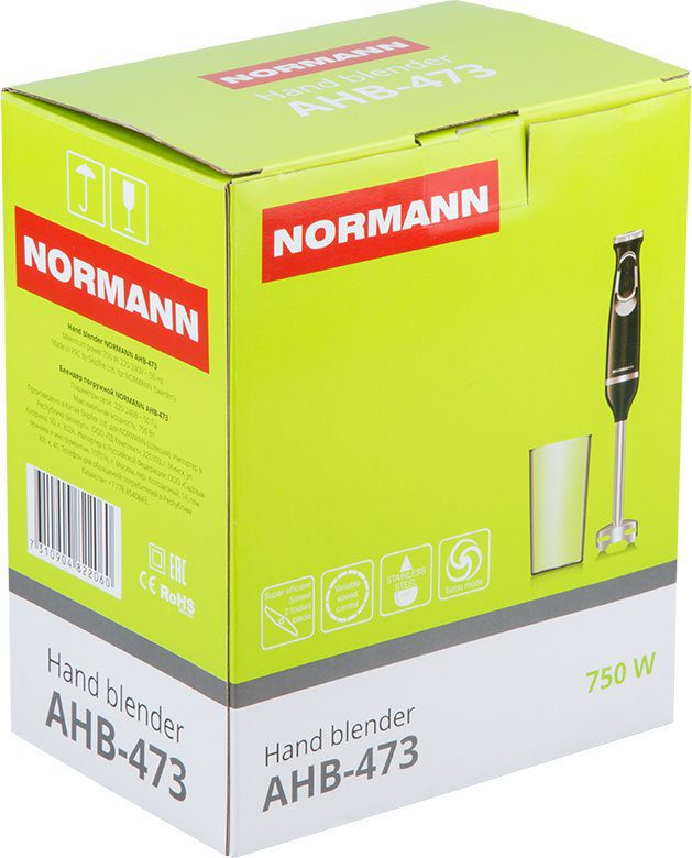 Блендер NORMANN AHB-473 – погружной блендер мощностью 750 Вт. Он станет незаменимым помощником на вашей кухне. Предназначен для быстрого измельчения продуктов. Отлично подойдет для приготовления молочных коктейлей, фруктовых напитков, смешивания соусов. Прибор оснащен поворотным регулятором скорости. Блендер имеет импульсный режим ‒ способ обработки особо твердых продуктов. Также есть режим Турбо, он включается в конце процесса приготовления для скорейшего и качественного завершения работы. Турборежим позволяет быстро превратить в пюре особо мягкие и нежные продукты. Погружная часть и нож прибора выполнены из нержавеющей стали. В комплекте идет мерный стакан с крышкой.