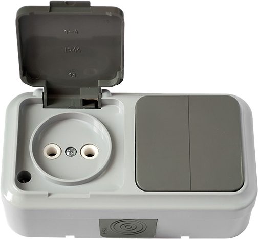 Выключатель двойной с розеткой наружный BYLECTRICA Пралеска Аква серый 2В-РЦ-655(03) изготовлен из ABS пластика, который обладает высокой ударопрочностью. Климатическое исполнение УХЛ4. Номинальный ток выключателя: 10 А. Номинальный ток розетки: 16 А. Сечение проводников (для выключателя) от 1,0 до 2,5 мм². Сечение проводников (для розетки) от 1,5 до 2,5 мм².
