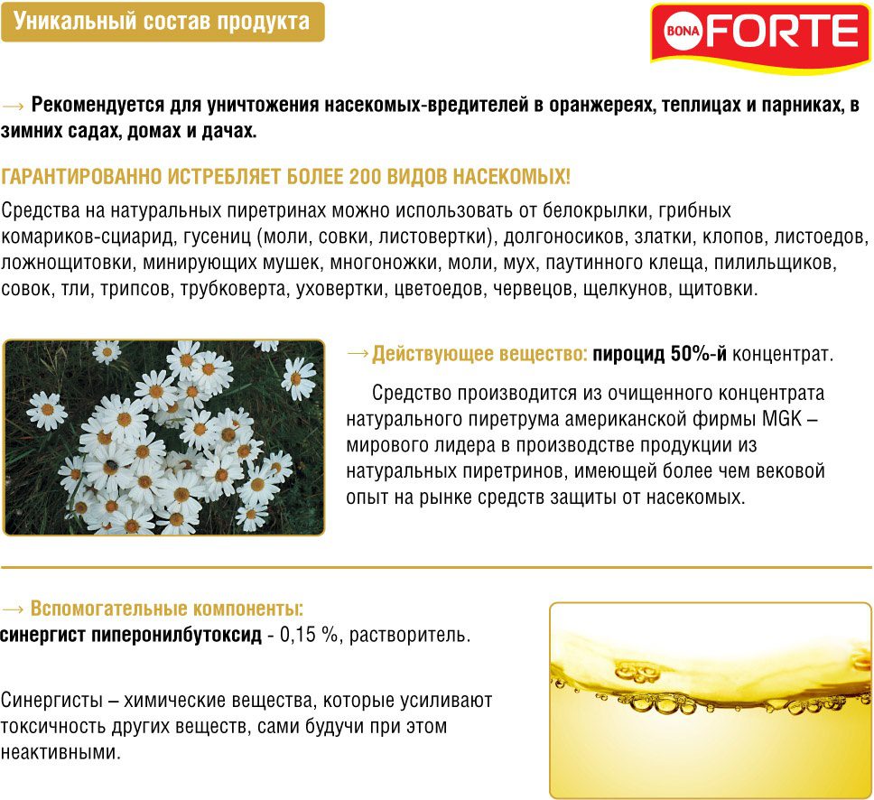 – безопасная обработка – после воздействия натурального пиретрума на насекомых, действующие вещества быстро разлагаются до экологически безопасных остатков, не причиняя ущерб человеку и окружающей среде;