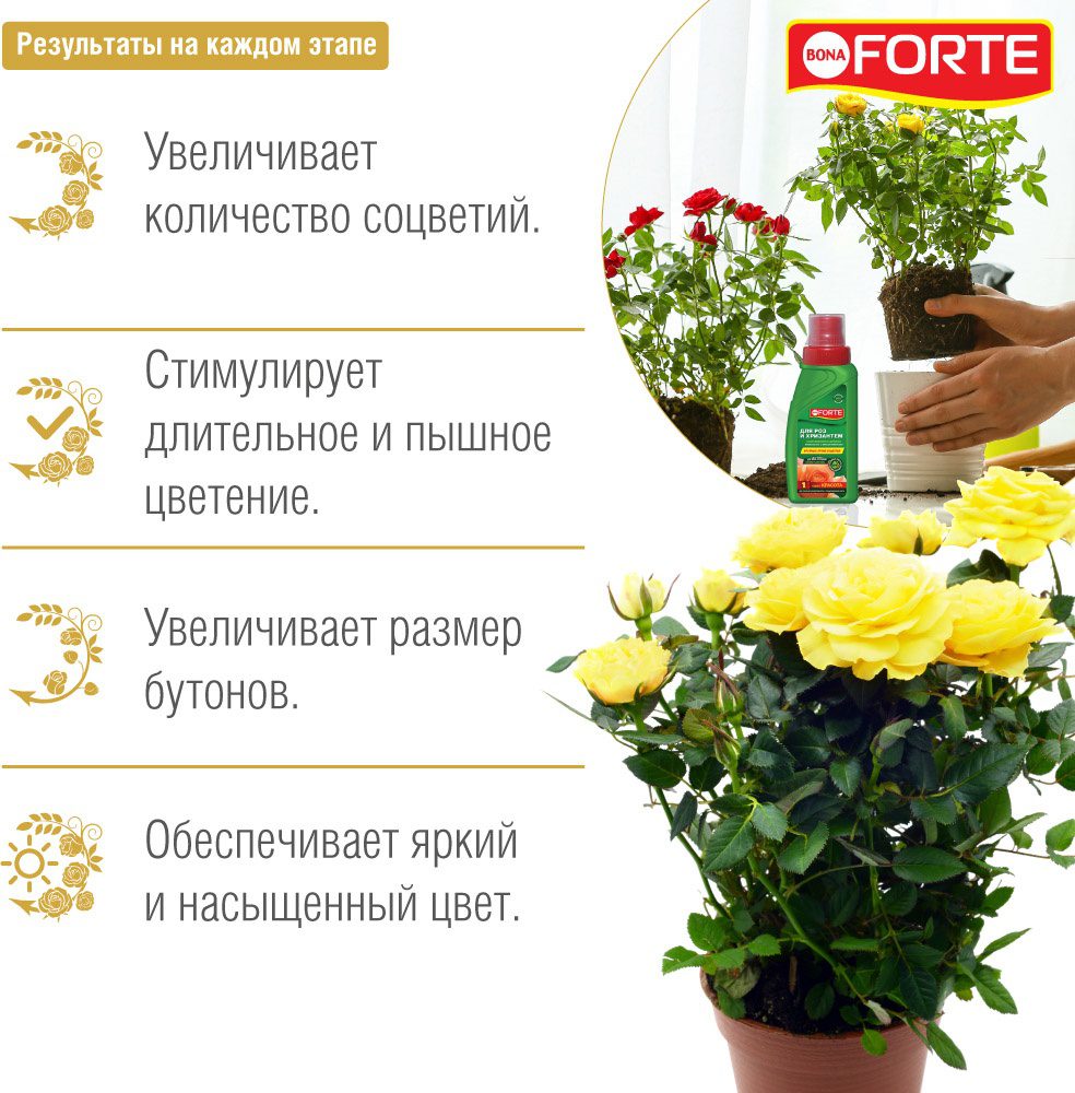Удобрение минеральное BONA FORTE Красота Для роз и хризантем 285 мл (BF21010251) для усиления декоративности и стимулирования роста растений. Подходит для всех сортов роз: кустарниковых, миниатюрных, патио, почвопокровных, плетистых, флорибунды, чайно-гибридных, а также всех видов и сортов хризантем. Удобрение содержит полный комплекс веществ, необходимых для полноценного и сбалансированного питания растений.