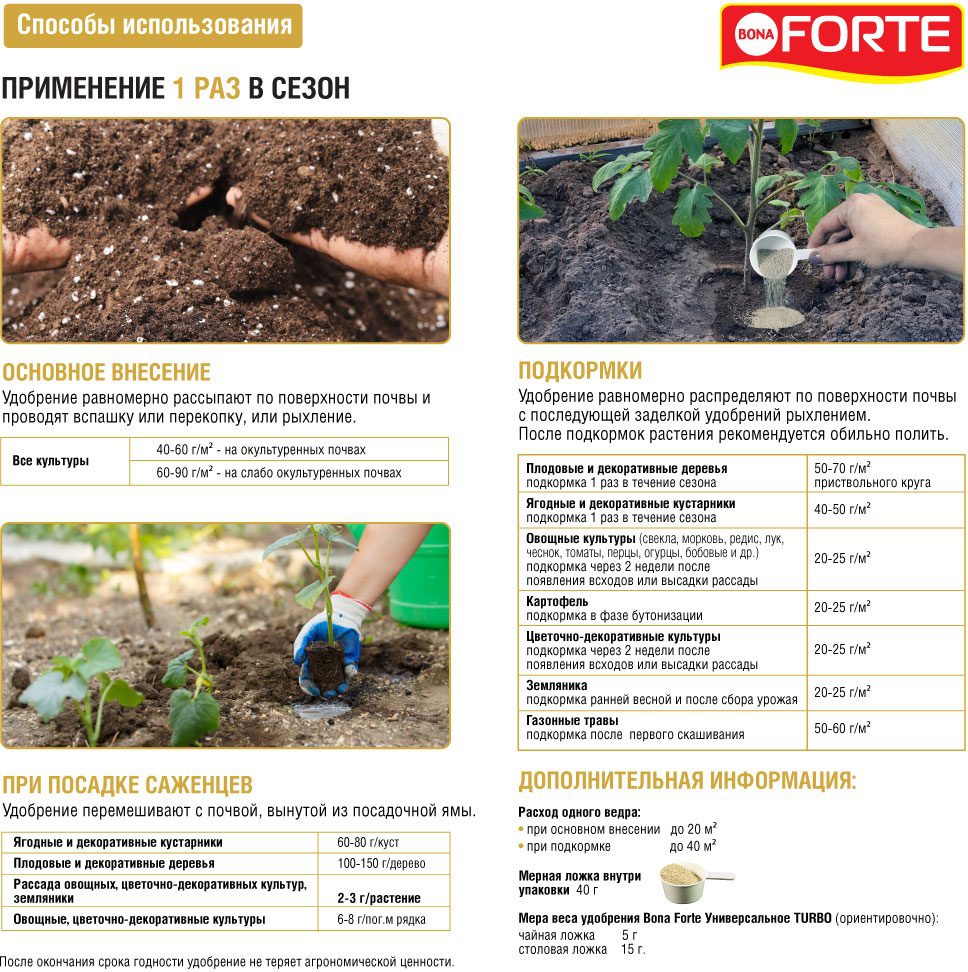 | Сроки внесения в почву | основное внесение, подкормка (послепосевное), припосевное внесение |