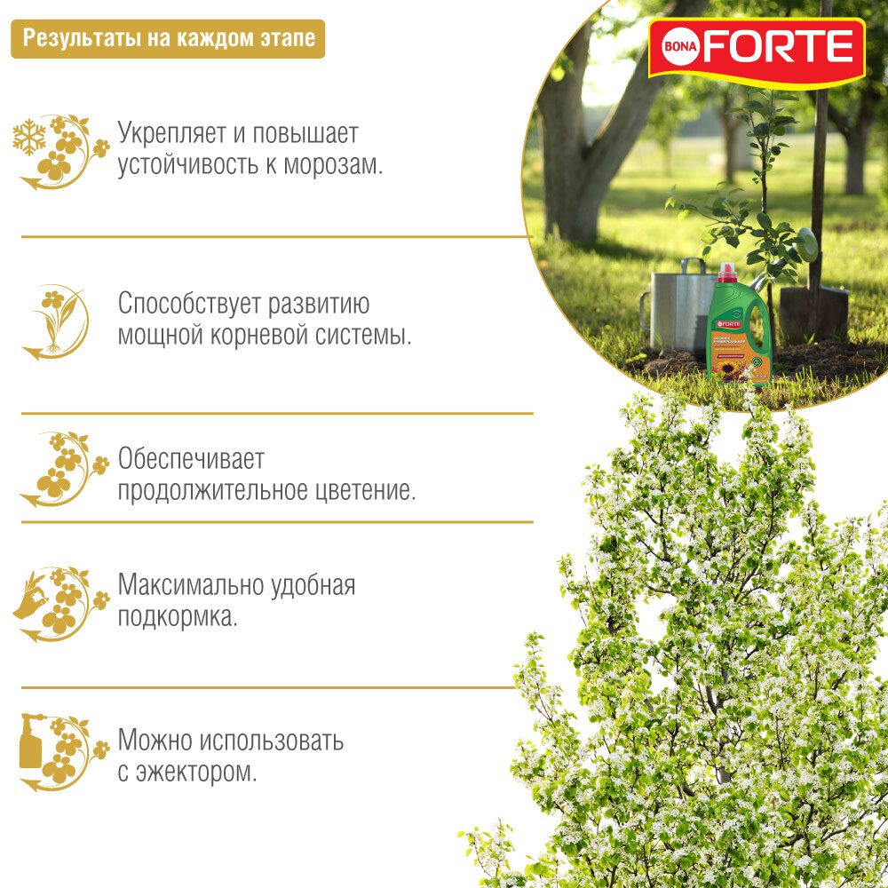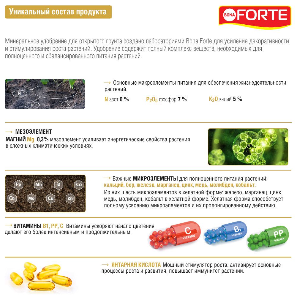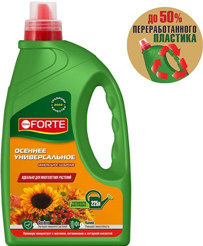 Удобрение минеральное BONA FORTE Универсальное 1,5 л (BF21040161) идеально подходит для многолетних растений. Удобрение содержит полный комплекс веществ, необходимых для полноценного и сбалансированного питания растений.