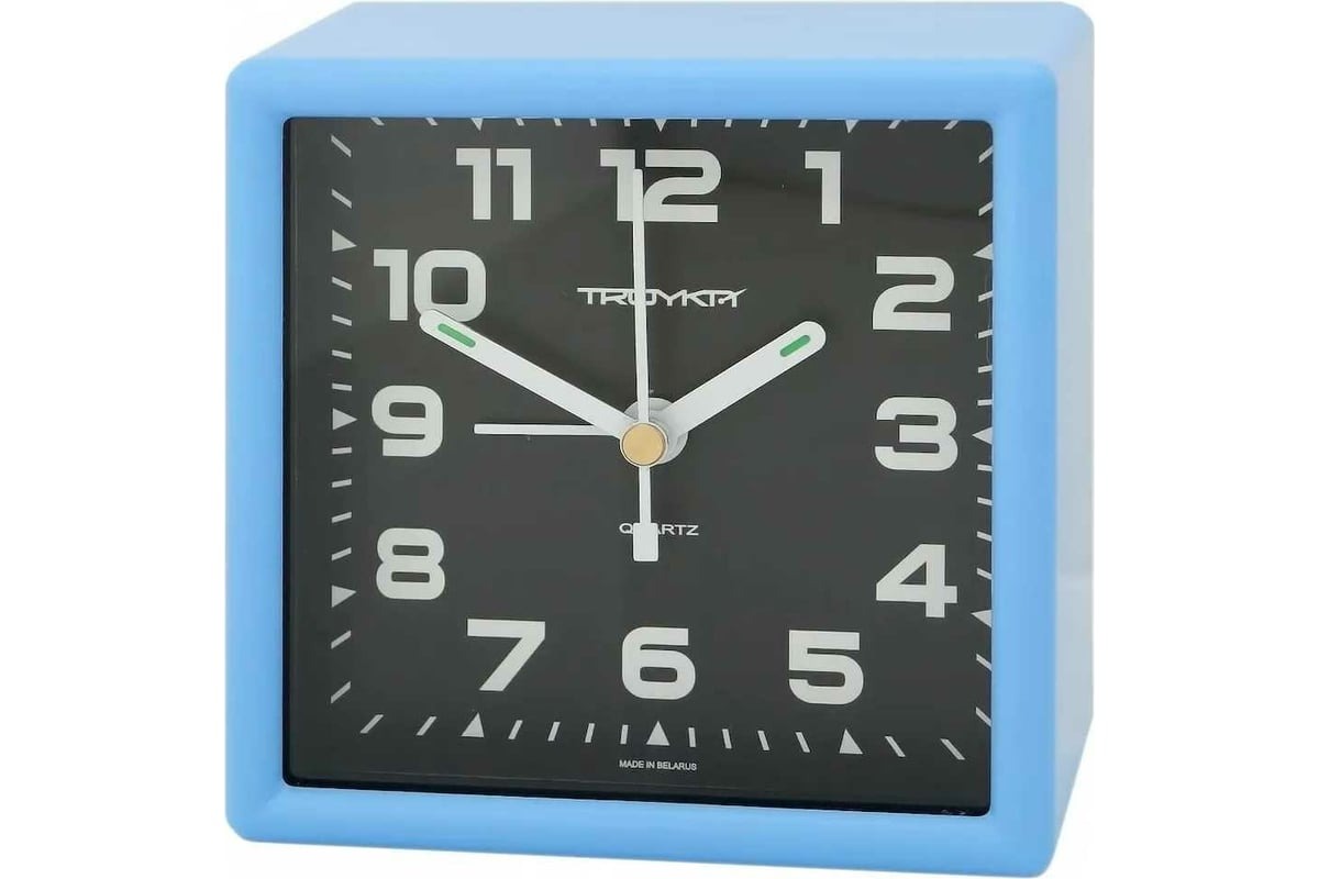Часы с будильником TROYKATIME БЭМ-08.41800 – это красивые и надежные часы для Вашей спальной комнаты. Он отлично украсит Ваш интерьер, а также не даст проспать важные события в Вашей жизни. Модель выполнена из голубого пластика и минерального стекла с арабским циферблатом. На задней панели будильника расположены переключатель включения/выключения механизма и два колесика для настройки текущего времени и времени звонка будильника. Будильник работает от 1 батарейки типа AA (входит в комплект).