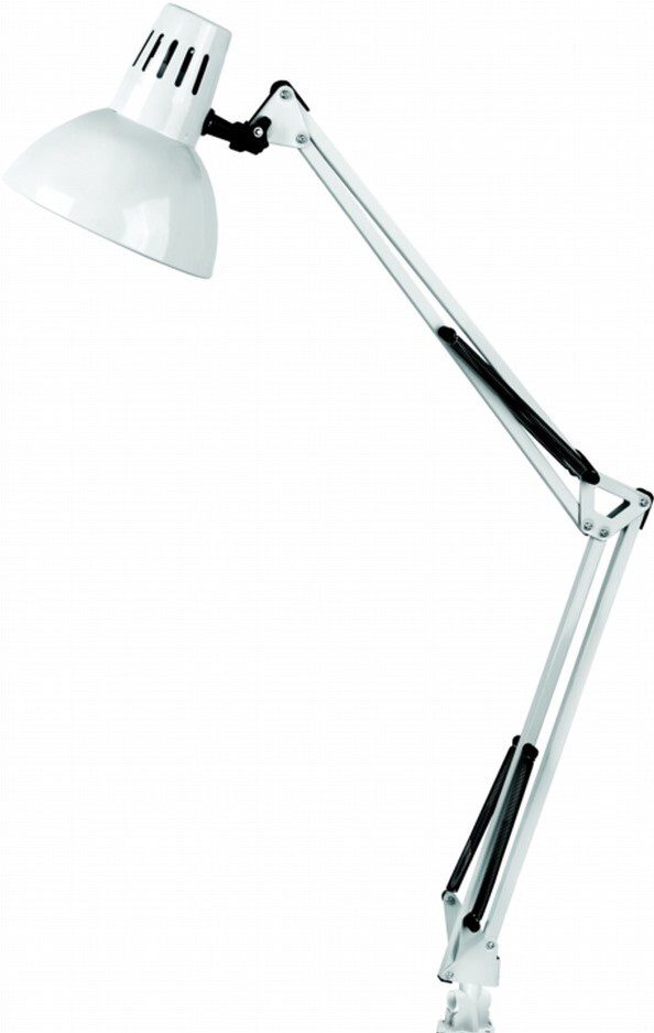 Лампа настольная CAMELION KD-312 белая (KD-312 C01) с креплением на струбцине служит для освещения рабочего места дома и в офисе. Стильный дизайн светильника может украсить любой интерьер. Плафон изготовлен из металла. Регулируется по углу наклона и повороту. Можно использовать с любыми типами ламп, в том числе со светодиодными, мощностью до 60 Ватт. С выключателем на проводе. Длина провода 1,6 метра.