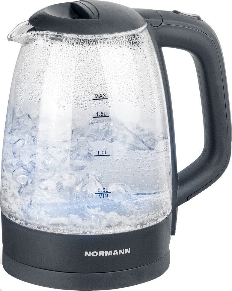 Электрочайник NORMANN AKL-237 предназначен для подогрева, кипячения воды, приготовления горячих напитков. Корпус изготовлен из стекла, которое не изменяет вкусовые качества жидкости и позволяет следить за уровнем воды. Закрытый нагревательный элемент обеспечивает равномерный обогрев и защищен от образования накипи. Возможность вращать чайник на подставке и наличие индикатора работы обеспечивают удобство эксплуатации. В качестве индикации включения используется светодиодная подсветка. В подставке имеется отсек для шнура, позволяющий экономить место на кухне.