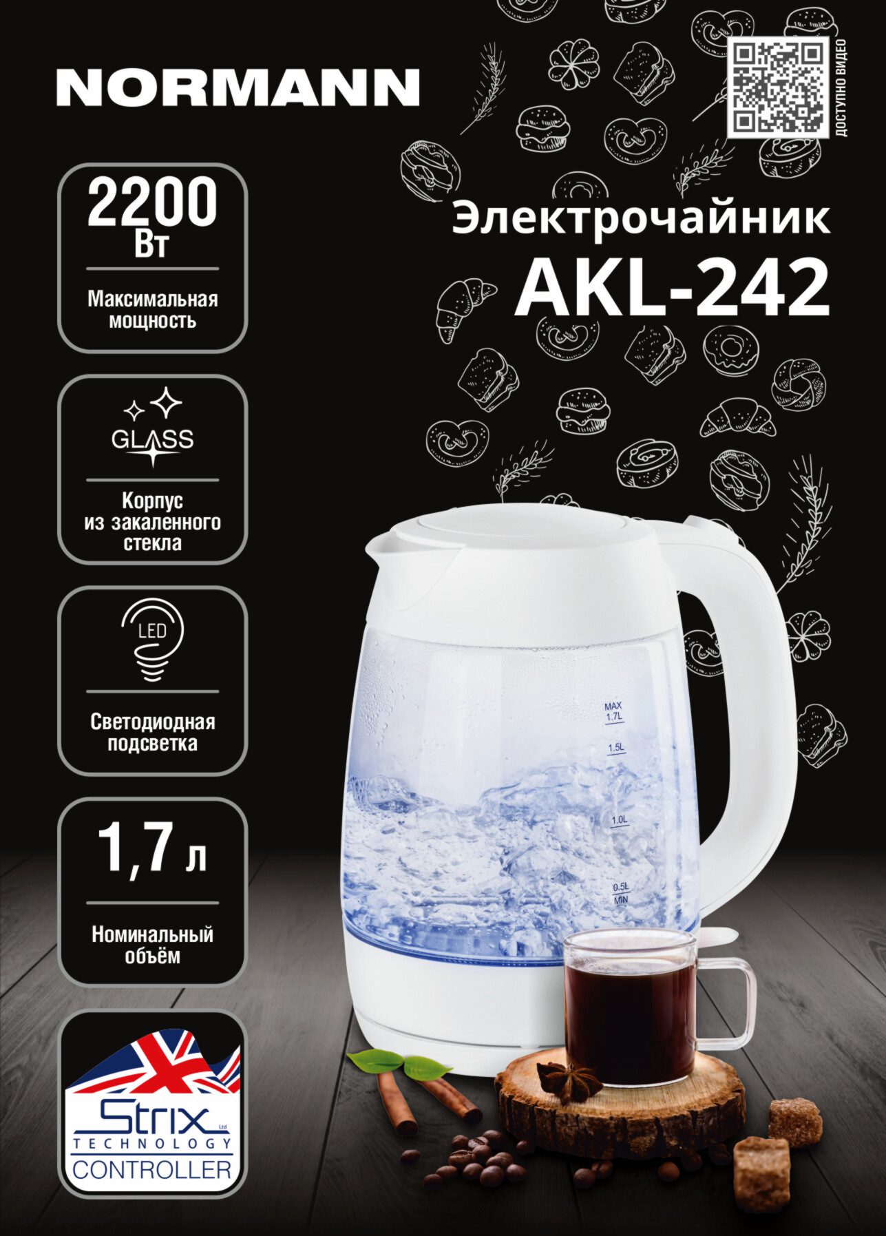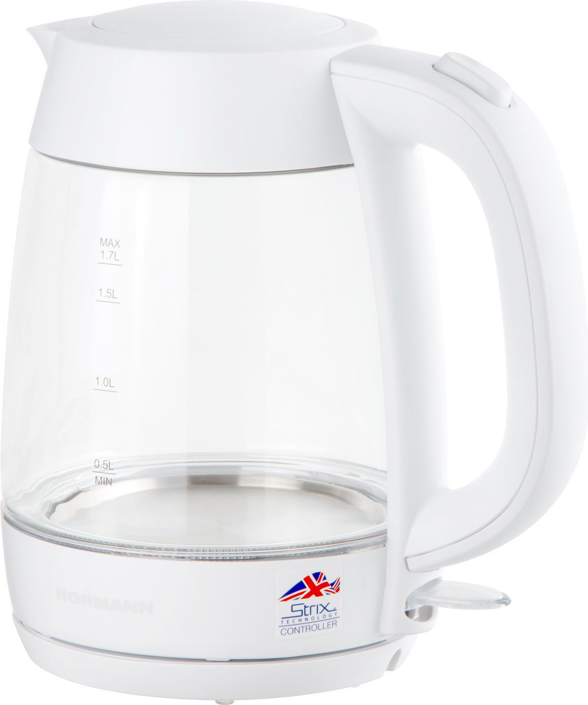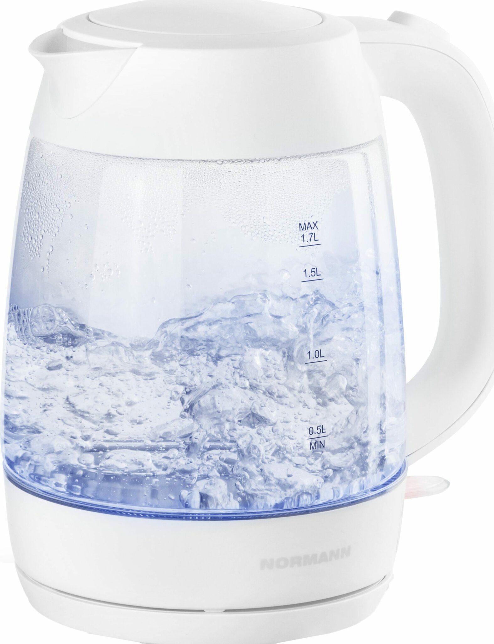 Электрочайник NORMANN AKL-237 предназначен для подогрева, кипячения воды, приготовления горячих напитков. Корпус изготовлен из стекла, которое не изменяет вкусовые качества жидкости и позволяет следить за уровнем воды. Закрытый нагревательный элемент обеспечивает равномерный обогрев и защищен от образования накипи. Возможность вращать чайник на подставке и наличие индикатора работы обеспечивают удобство эксплуатации. В качестве индикации включения используется светодиодная подсветка. В подставке имеется отсек для шнура, позволяющий экономить место на кухне.