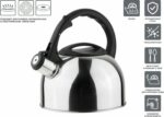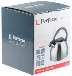 Чайник со свистком PERFECTO LINEA Magnum 2,5 л (52-025018) предназначен для подогрева, кипячения воды, приготовления горячих напитков. Оснащен удобной бакелитовой не нагревающейся ручкой. Клапан встроенного свистка также изготовлен из бакелита. Данный материал предотвращает появление ожогов. Крышка плотно прилегает к корпусу, сохраняя дольше тепло. Материал чайника отвечает всем гигиеническим, токсикологическим нормам, полностью безвреден, не меняет вкус жидкости. Разрешается использовать на газовых, электрических, стеклокерамических плитах. Легко чистится, подходит для мытья в посудомоечной машине. Покрытие защищает посуду от внешних механических воздействий и служит украшением интерьера кухни. Общий объем – 2,5 литра.