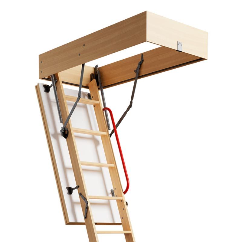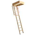 Классический вариант чердачной лестницы. Утепленная конструкция люка. Проем в потолке для монтажа этой лестницы должен иметь размер 60×120 см, а высота помещения не превышать 300 см. По длине лестницу возможно укоротить. Крышка люка изготовлена из ДВП и окрашена в белый цвет. Для более комфортной и безопасной эксплуатации мансардных лестниц, дополнительно рекомендуется монтировать поручень и наконечники. Длина (для транспортировки): 1180 мм.