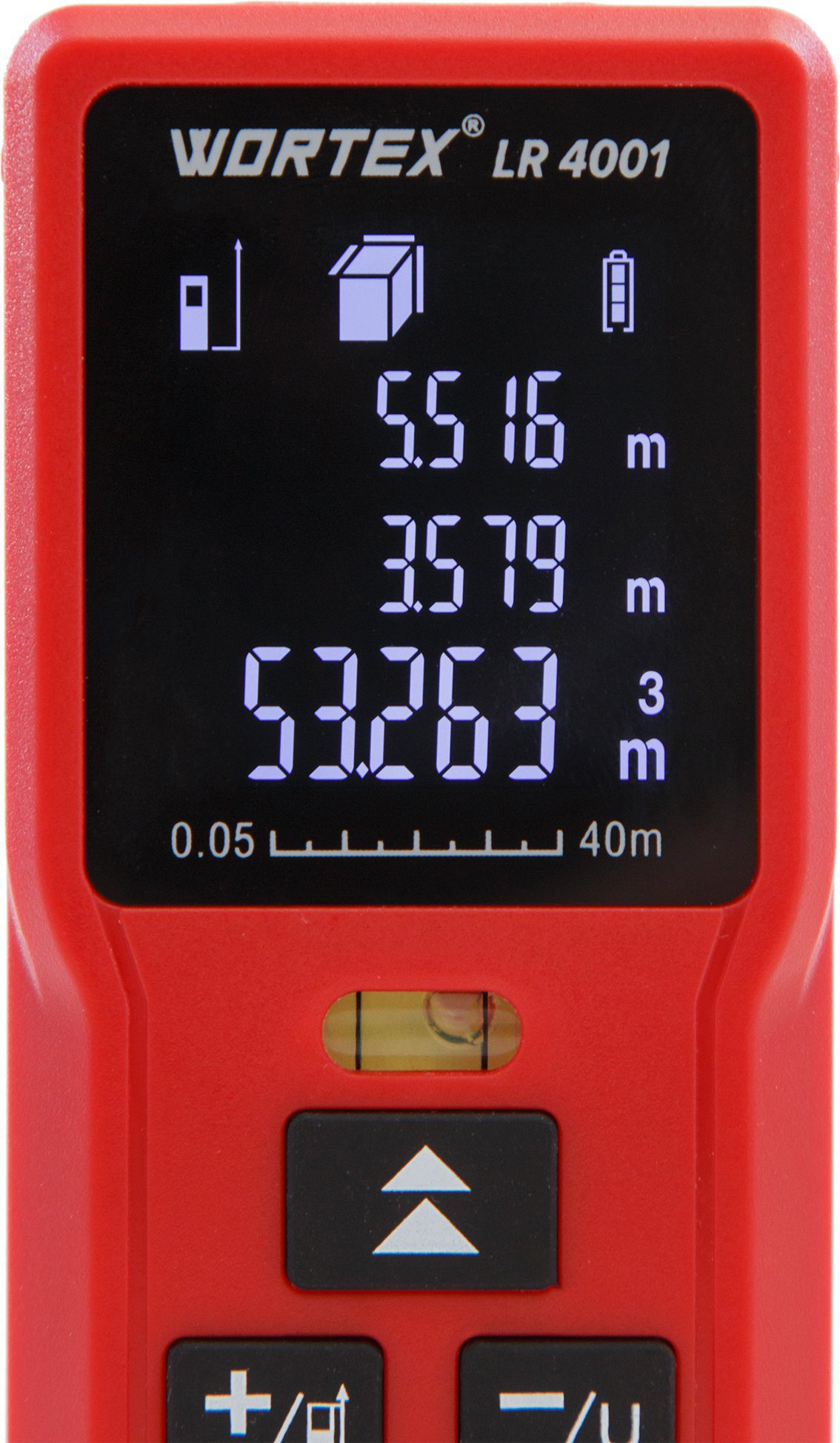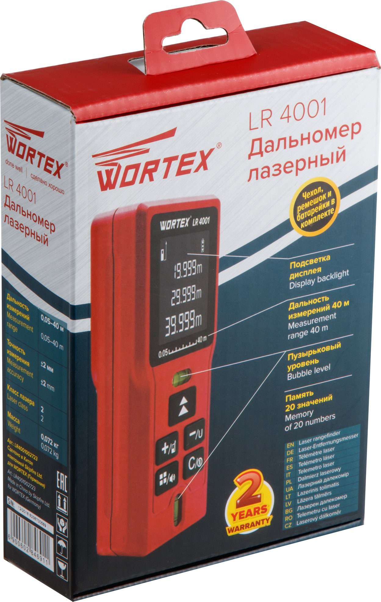 Дальномер лазерный WORTEX LR 4001 (LR4001002723) Цифровой лазерный дальномер оснащен современными лазерными технологиями, что гарантирует высокую точность и надежность результатов измерения. Функционально прибор измеряет длину, площадь, объем, возможно применение теоремы Пифагора. Для удобства использования в слабоосвещенных помещениях предусмотрена подсветка дисплея.