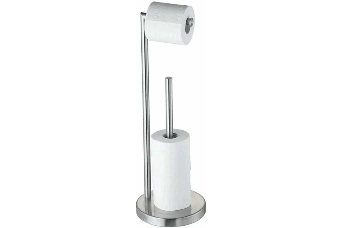 Держатель для туалетной бумаги напольный всегда поддержит порядок в Вашей ванне итуалете. Гарнитура для туалета аккуратно хранит запасные рулоны в одном месте. Теперь не придется беспокоиться, что бумага непредвиденно закончится. Изящная подставка для туалетной бумаги изготовленаиз металла, а крепкая конструкция надежна для повседневного применения. Тонкие металлические линии держателя для туалетной бумаги делают его изящным и лаконичным.