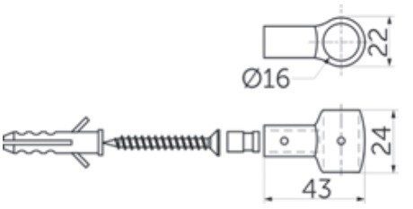 Держатель для рейлинга РП ретро хром (54597) предназначен для крепления трубы (рейлинга) d16 мм к стене.