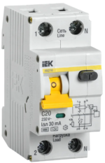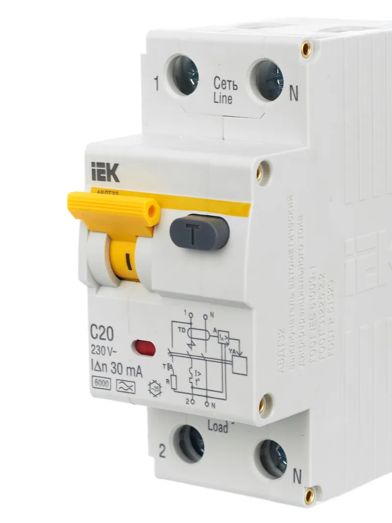 Дифавтомат IEK АВДТ 32 1P+N C20 30мА (MAD22-5-020-C-30) предназначен для защиты человека от поражения электрическим током при повреждении изоляции электроустановок, для предотвращения пожаров вследствие протекания токов утечки на землю и для защиты от перегрузки и короткого замыкания. Рекомендуется для защиты групповых линий, питающих розетки наружной установки, розеток и освещения подвалов и гаражей.