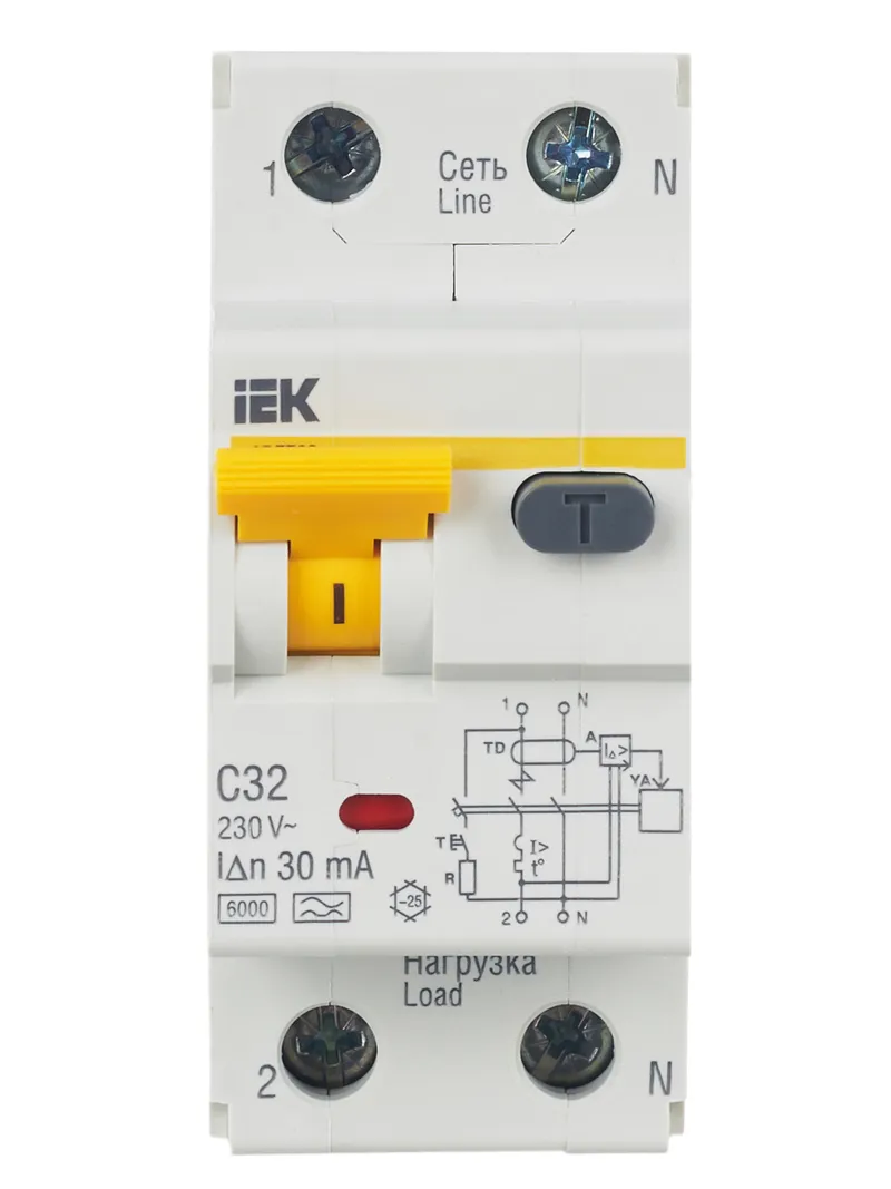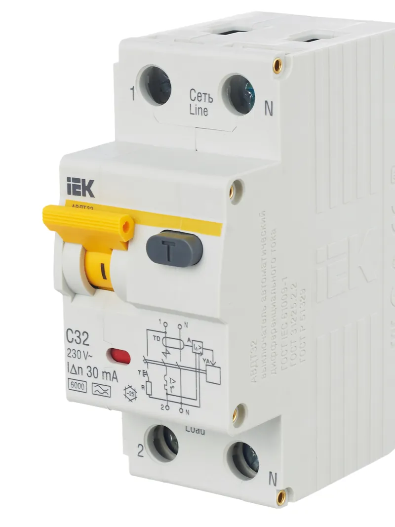 Дифавтомат IEK АВДТ 32 1P+N C32 30мА (MAD22-5-032-C-30) предназначен для защиты человека от поражения электрическим током при повреждении изоляции электроустановок, для предотвращения пожаров вследствие протекания токов утечки на землю и для защиты от перегрузки и короткого замыкания. Рекомендуется для защиты групповых линий, питающих розетки наружной установки, розеток и освещения подвалов и гаражей.