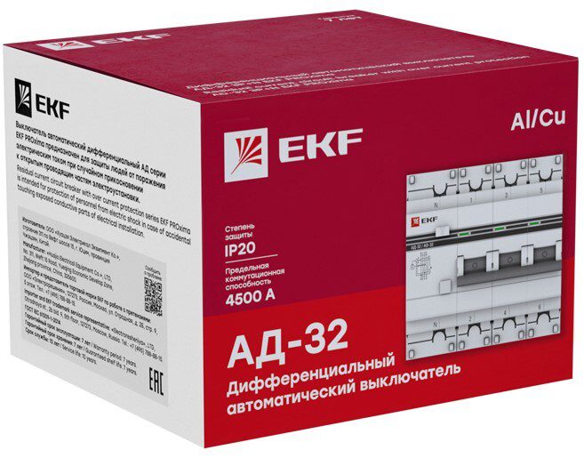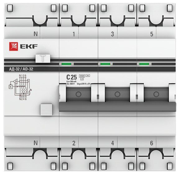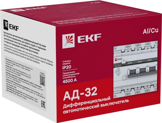 Дифавтомат EKF PROxima АД-32 3P+N 32А 30мА тип AC (DA32-32-30-4p-pro) представляет собой аппарат, сочетающий функции автоматического выключателя с устройством защитного отключения. При обнаружении автоматическим выключателем в защищаемом участке сети тока утечки (повреждения) на землю или сверхтока (тока перегрузки или короткого замыкания) происходит срабатывание устройства, приводящее к отключению защищаемой сети.