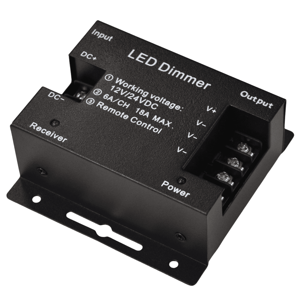 Диммер для светодиодной ленты TRUENERGY Control 18A (22005) с сенсорным пультом управления имеет 3 выходных канала. Максимальная нагрузка – 216/432 W.