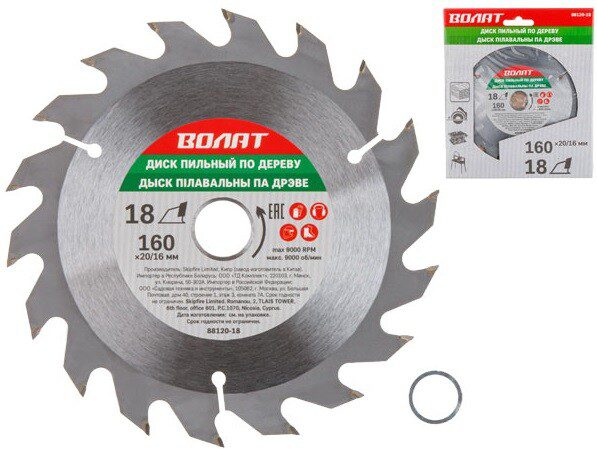 Диск пильный 160х20/16 мм 18 зубьев ВОЛАТ по дереву (88120-18) предназначен для продольного и поперечного распила древесины. Корпус диска шлифованный, изготовлен из стали 65Г и термонормализован. Форма зуба (ATB) с положительным углом наклона. Посадка 20/16 мм с переходным кольцом в комплекте.