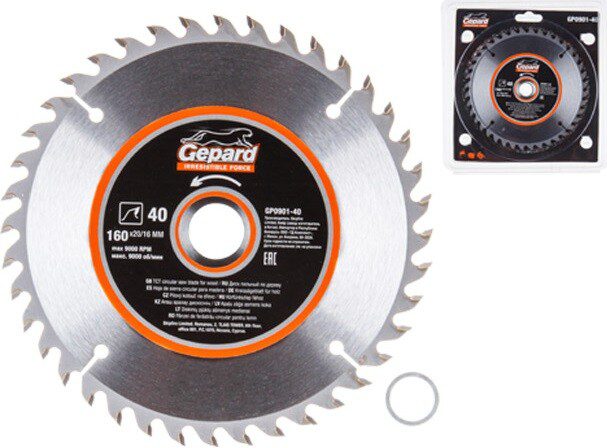 Диск пильный 160х20/16 мм 40 зубьев GEPARD (GP0901-40) для распиловки заготовок из мягких и твердых пород древесины, фанеры, ДСП. Изготовлен пильный диск из пружинной стали марки 65MN. Форма зуба (ATB) с положительным углом наклона обеспечивает эффективную распиловку крупных заготовок. Твердосплавные напайки из сплава карбид вольфрама (YG6X) припаяны высокопрочным припоем. Алмазная заточка с выхаживанием значительно увеличивает срок службы инструмента. Тщательно подобранный угол заточки твердосплавных зубьев позволяет производить качественные и высокопроизводительные работы по распиловке древесины. Компенсационные прорези уменьшают колебания, подавляют шумы и препятствуют изгибанию диска при нагреве.