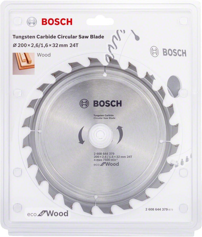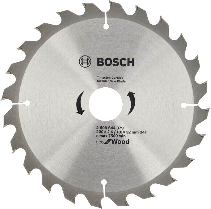 Диск пильный 200х32 мм 24 зуба BOSCH Eco for Wood (2608644379) предназначен для обработки мягкой и твердой древесины, ДСП для получения наиболее чистого и аккуратного реза.