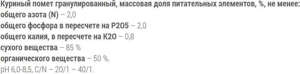 – В процессе биотехнической обработки куриного помета уничтожаются возбудители патогенных болезней (сальмонелла, грибные заболевания, вплоть до куриного гриппа), яйца гельминтов, личинки насекомых-вредителей, семена сорных растений.