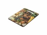 Рекомендации по уходу: перед первым использованием изделие промыть теплой водой и вытереть насухо мягкой тканью. Не мыть в посудомоечной машине. Лицевая сторона доски является декоративной, поэтому использовать только обратную сторону доски.