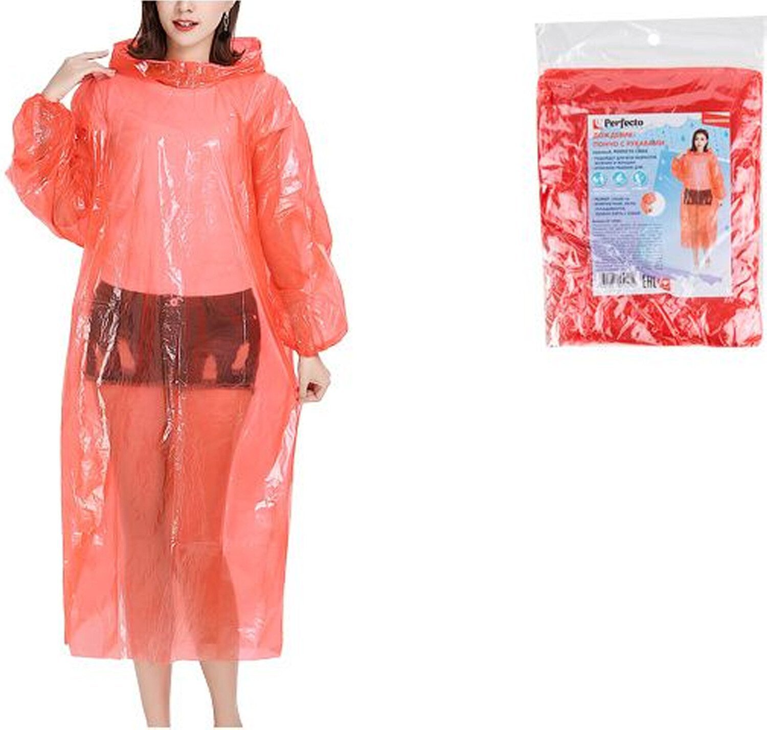Дождевик-пончо с рукавами PERFECTO LINEA красный (28-145001) подойдет для всех возрастов, мужчин и женщин. Отличное решение для велопрогулок, рыбалки, прогулок с детской коляской. Изготовлен из водоотталкивающего материала — полиэстера. Компактный, легко складывается. Удобно взять с собой и надеть в нужный момент. Защищает руки.