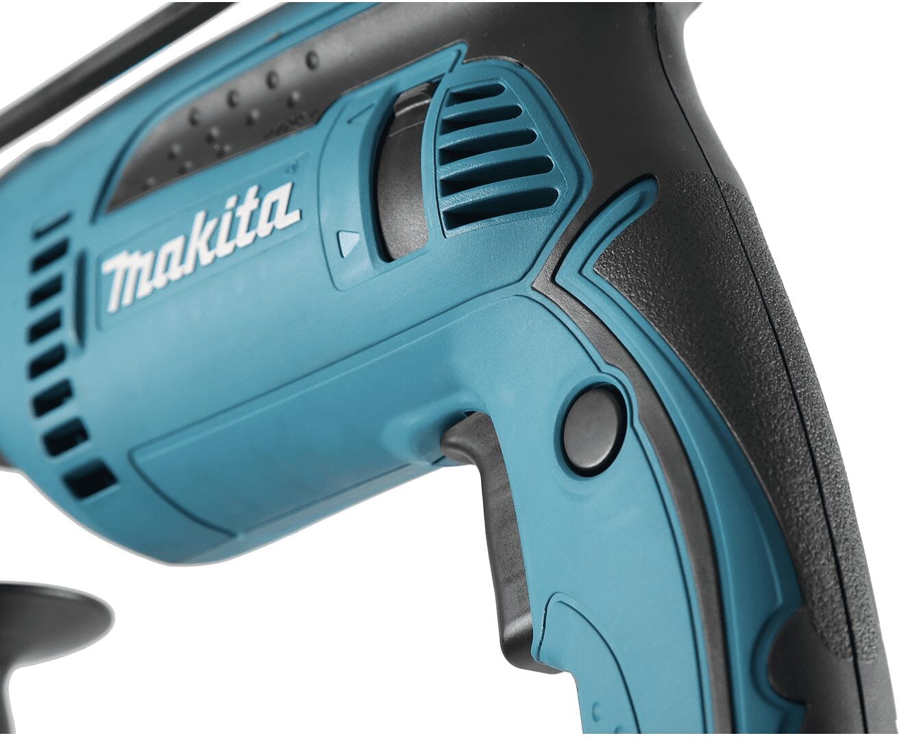 Дрель ударного действия MAKITA HP 1640 (HP1640) – профессиональная ударная дрель, способная работать в 2-х режимах. Для изготовления отверстий в кирпичной кладке, камне, бетоне, а так же металле до 13 мм и дереве до 30 мм. Обладает удобной конструкцией корпуса для удержания инструмента одной рукой, что актуально при потолочных работах. Удобный большой курковой включатель с фиксацией во включенном положении для безутомительной работы.
