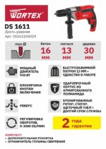 Дрель ударная WORTEX DS 1611 (DS161100029) – мощная дрель с высокой производительностью, имеет компактную конструкцию. Металлический корпус редуктора обеспечивает долгий срок службы. Надежный металлический сверлильный патрон. Регулировка оборотов, реверс, блокировка кнопки включения, подсветка, а так же имеется рукоятка с ограничителем глубины.