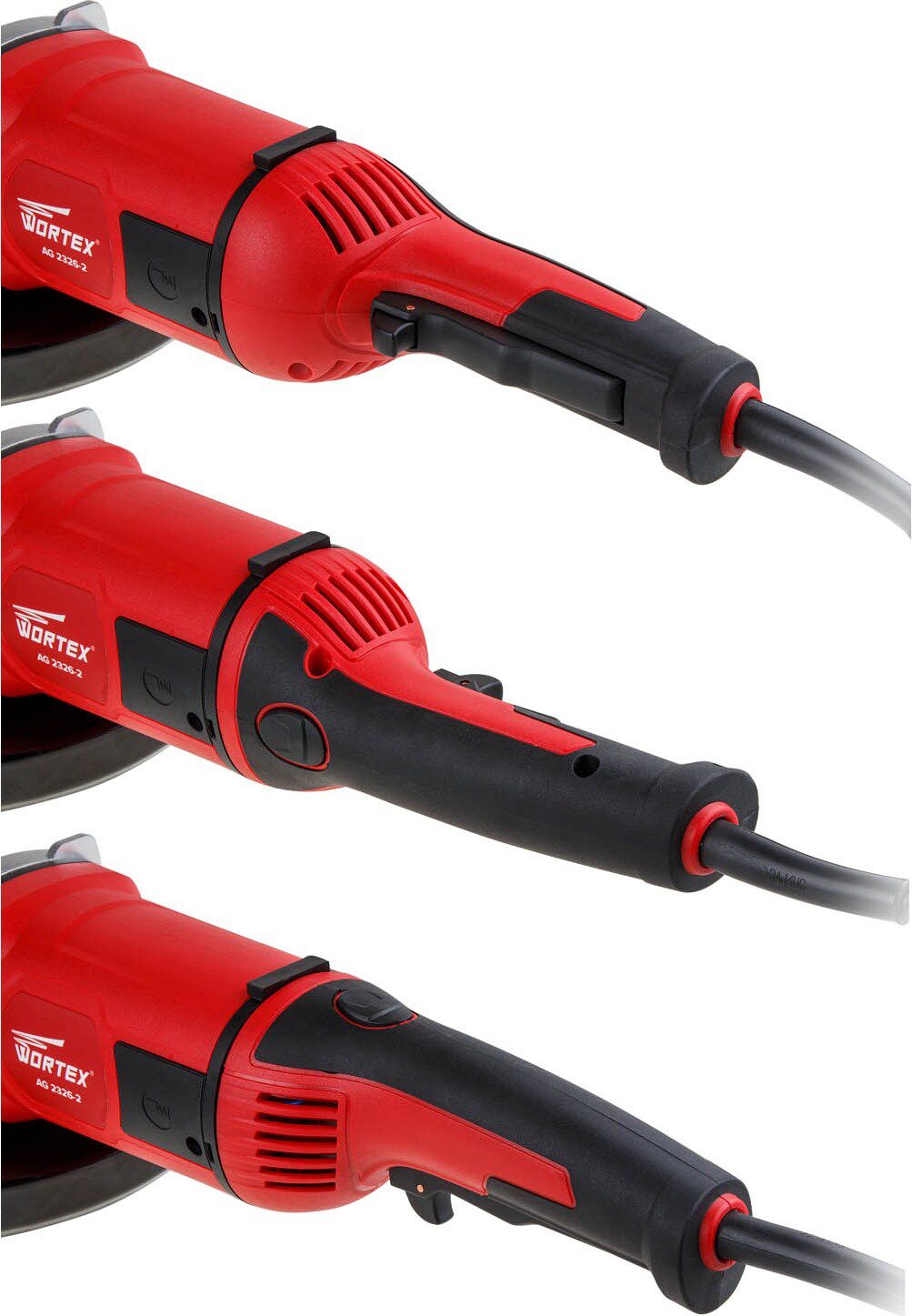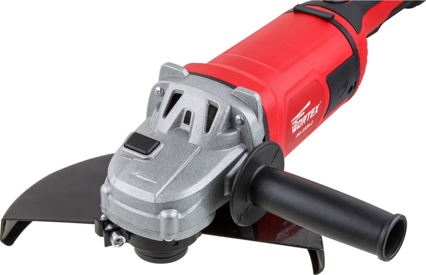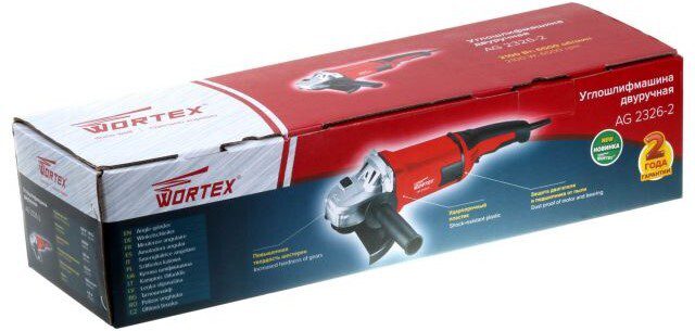 Шлифмашина угловая (болгарка) WORTEX AG 2326-2 (AG2326200029) имеет мощный двигатель, пылезащиту (бронированный ротор и статор), плавный пуск, прочный и удобный корпус, устойчивый к повреждениям, поворотную рукоятку, быстрорегулируемый защитный кожух, блокировка шпинделя, резиновый морозостойкий кабель 2 м.