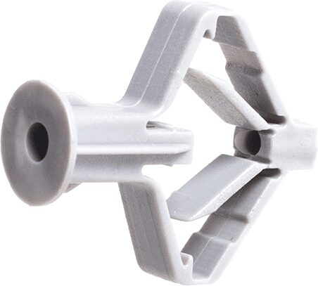 Дюбель пластмассовый для пустотелых конструкций STARFIX используется для крепления легких предметов (светильников, полок, плинтусов, выключателей, кабельных каналов и так далее) к пустотелым материалам толщиной 10-12 мм. Применяется совместно с шурупом. При монтаже передняя часть дюбеля “набегает” по шурупу и прижимается к листовому материалу. Изготовлен из полипропилена. Диаметр шурупа – 3,5-4,0 мм. Минимальная длина шурупа – 55 мм. Толщина панели – 10-12 или 20-24 мм.