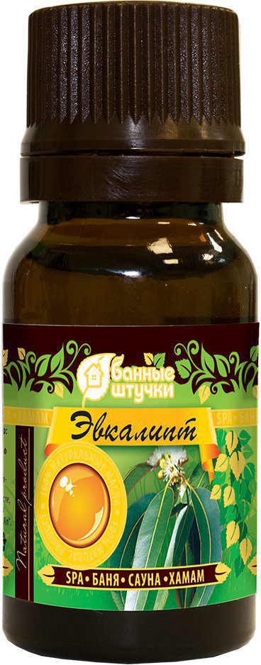 Эфирное масло БАННЫЕ ШТУЧКИ Эвкалипт 10 мл (32208) — натуральное эфирное масло эвкалипта для бани и сауны. Ароматное эфирное масло поднимет настроение, создаст атмосферу спокойствия и гармонии. Когда вы добавите несколько капель масла на раскаленные камни или в горячую воду, ароматные запахи, смешиваясь с разогретым воздухом, создадут особую атмосферу. Смягченный и ароматизированный воздух облегчит дыхание, благотворно повлияет на кожу. Хранить отдельно от пищевых продуктов при температуре не выше 25 градусов.