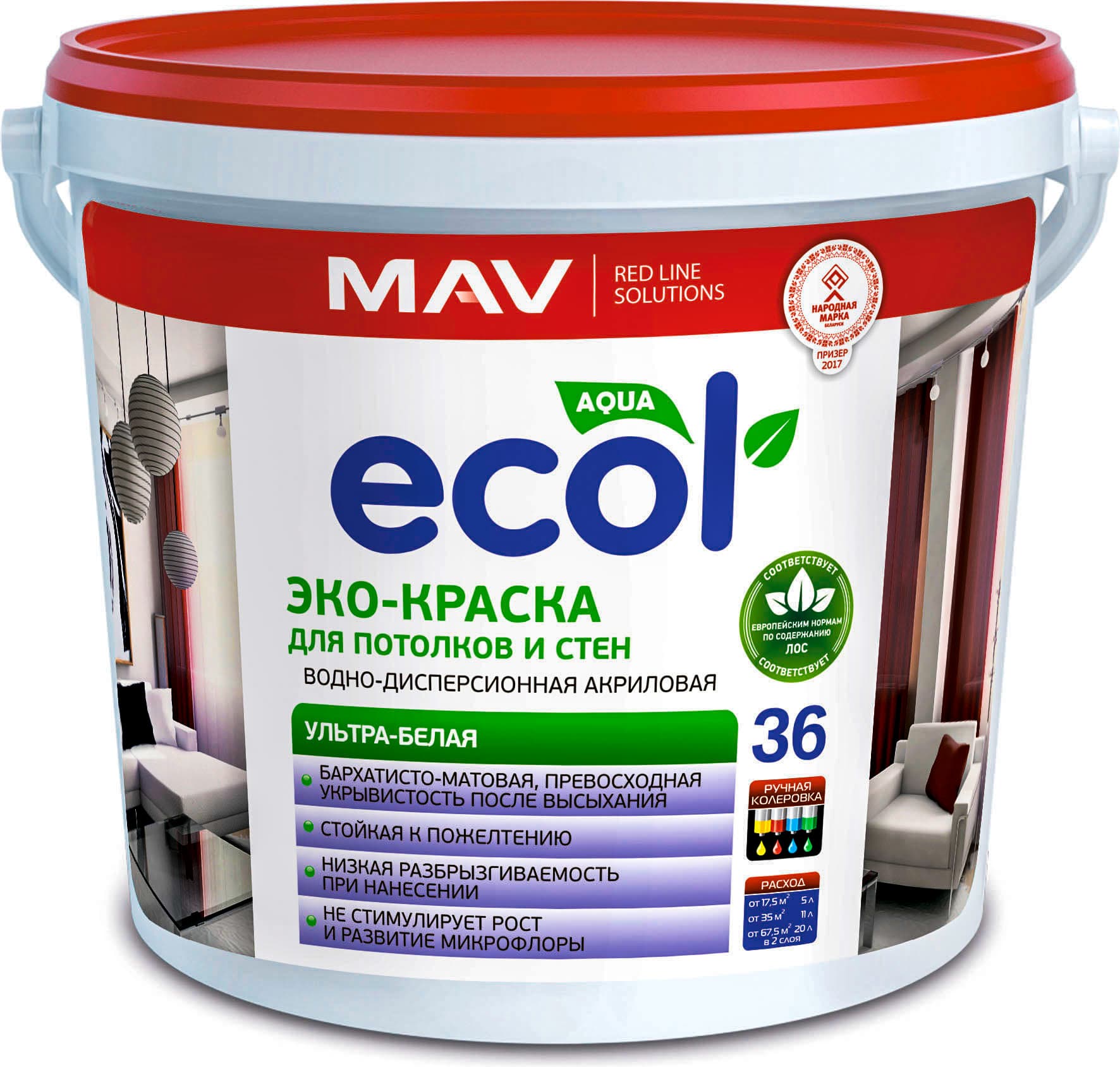 Краска ВД ECOL 36 бархатисто-матовая снежно-белая краска предназначена для окраски бетонных, оштукатуренных,