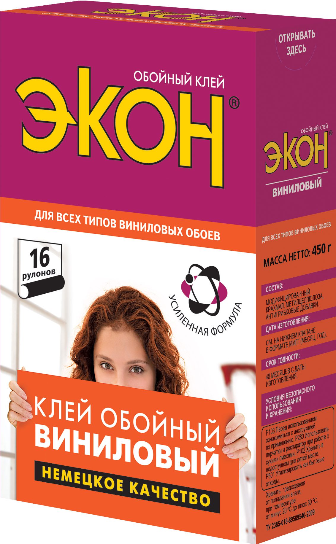 Клей обойный ЭКОН Виниловый 450 г (1830424) предназначен для наклеивания всех видов виниловых обоев, вспененного винила, шелкографии. Содержит противогрибковые добавки.