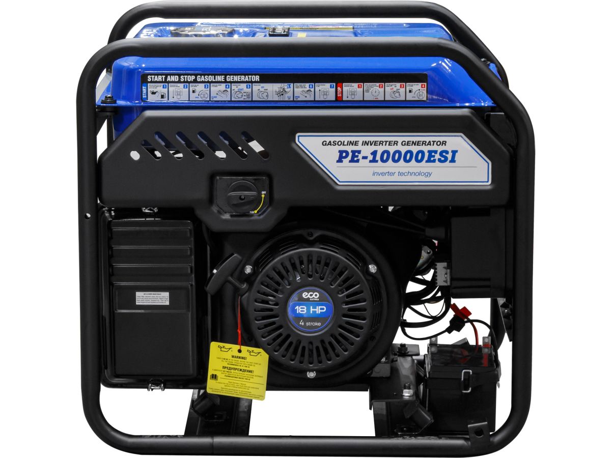 Генератор инверторный бензиновый ECO PE-10000ESI (EC1710-3) предназначен для автономного электроснабжения устройств с высокими требованиями к качеству электрической энергии в условиях отсутствия бытовой электросети. Он оснащён электростартером и возможностью автоматического запуска (имеется разъем для подключения блока автоматики), что делает его удобным в эксплуатации.